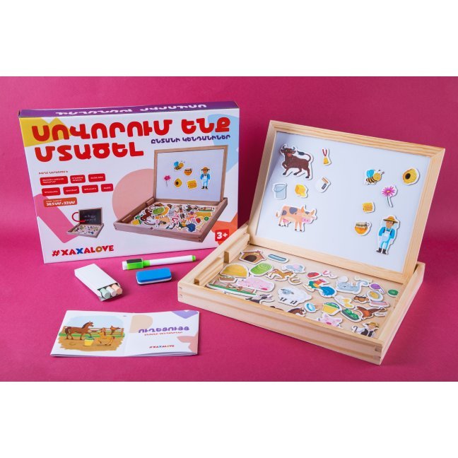 Խաղը բաղկացած է փայտե տուփից, գրատախտակից, գունանշիչից, կավիճներից և մագնիսե կտորներից: Մագնիսե կտորները կազմում են առանձին թեմատիկ խմբեր: Պետք է որոշել պատկերների միջև եղած կապերը և միավորել դրանք առանձին խմբերում: