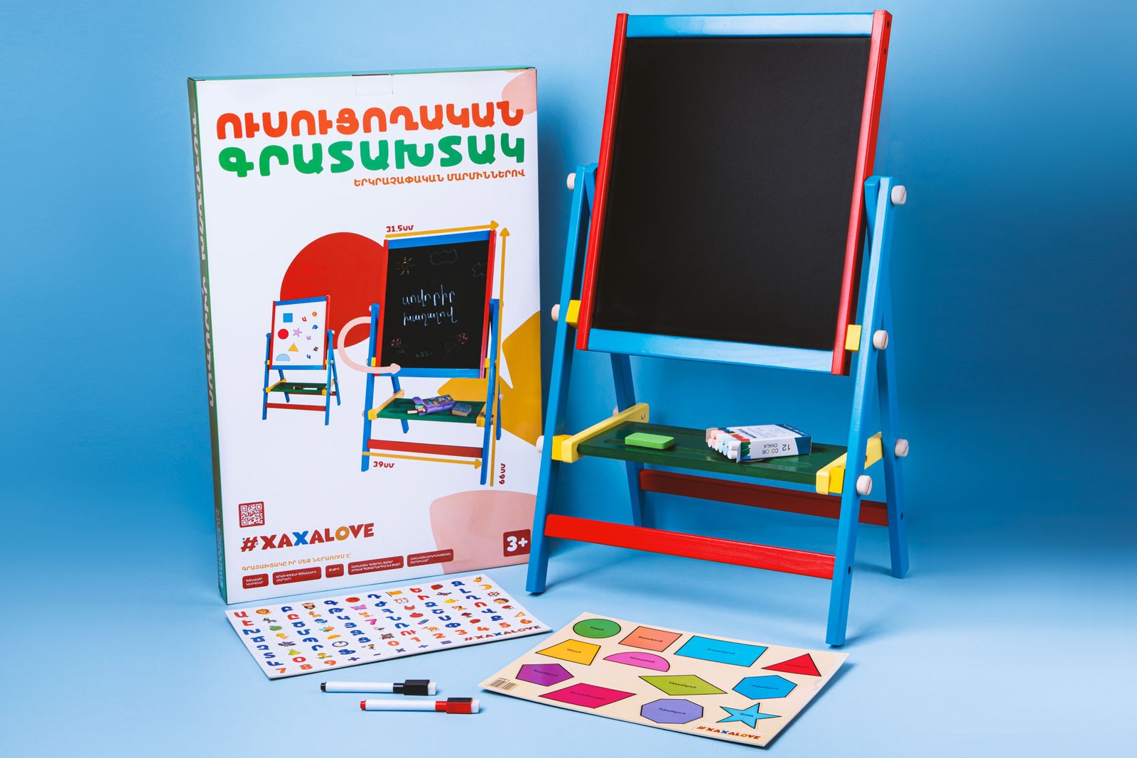 Խաղն իրենից ներկայացնում է երկկողմ գրատախտակ՝ իր կավիճներով և գունանշիչներով: Գունանշիչները նախատեսված են գրատախտակի սպիտակ ողորկ երեսի համար: Թողարկվում են տարբեր չափերի, տարբեր խաղեր ներառող գրատախտակներ: Կախված տեսակից՝ տուփի մեջ կարող են լինել նաև գունավոր երկրաչափական պատկերներ, մագնիսե թվեր, գործողությունների նշաններ, հայերենի և անգլերենի տառերը, ինչպես նաև մագնիսե այլ հետաքրքիր խաղեր՝ «Մարիամիկը», «Սովորում ենք մտածել» և այլն: